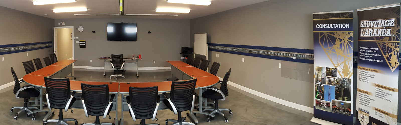 Le domaine de la formation en sauvetage et en santé/sécurité a beaucoup évolué dans les dernières années : nouvelles normes, nouveaux équipements, procédures complexes, etc… Il peut parfois être difficile pour le travailleur de s’y retrouver et de faire le pont entre règlements et réalité terrain. De plus, l’expérience nous a appris qu’il est souvent compliqué de libérer des installations réelles pour l’entrainement des membres d’une brigade. C’est entre autres pour ces raisons que Sauvetage L’Aranéa s’est dotée, d’un centre à la fine pointe de la technologie dans le but d’augmenter son efficacité : des installations polyvalentes et sécuritaires, axées sur le suivi de l’apprenti, sur la création de situations le plus près de la réalité et permettant une efficacité pédagogique sans précédent. Ces installations reflètent notre expérience des 20 dernières années passées dans le domaine du sauvetage et de la sécurité industrielle en général : 5 échelles fixes pour le sauvetage en éolienne, installations permanentes permettant plus d’une quarantaine de scénarios différents en espace clos, différentes entrées adaptables en fonction de la réalité de votre terrain, ancrages permanents pour la réalisation de montage de sauvetage en hauteur, montages métalliques pour la sauvetage sur structure d’acier, simulateur de cales de navire, APRIAs, système d’adduction d’air, mannequins de pratique, panoplie complète d’équipements de sauvetage, et beaucoup plus. Entre autres, le centre est équipé de 4 téléviseurs grand format et de 42 caméras vision de nuit permettant aux instructeurs et aux apprentis de suivre les moindres faits et gestes des étudiants en simulation à l’intérieur des espaces clos, ce qui ajoute grandement au suivi pédagogique de vos équipiers, ainsi qu’à la sécurité de tous et chacun. Nous sommes également en mesure d’accueillir jusqu’à 2 groupes de 18 étudiants à la fois dans notre nouvelle annexe dédiée aux cours théorique. En outre, notre cuisine fonctionnelle permet aux utilisateurs de prendre leur repas sur place, ce qui limite les déplacements e, par conséquent, favorise l’efficacité et le rendement d’une journée de formation. Jusqu’à présent, plus de 4000 personnes ont suivi une formation à nos locaux. Unique en son genre au Québec, nous croyons que notre école, jumelée à notre expertise, représente le meilleur endroit pour la réalisation d’une formation sécuritaire, enrichissante et intense pour le travailleur ou le sauveteur qui recherche à atteindre son plein potentiel. Situé au 2441 Route Lupien à Ste-Angèle-de-Prémont, le centre se trouve à mi-chemin entre Montréal et Québec. N’hésitez pas à venir nous visiter!