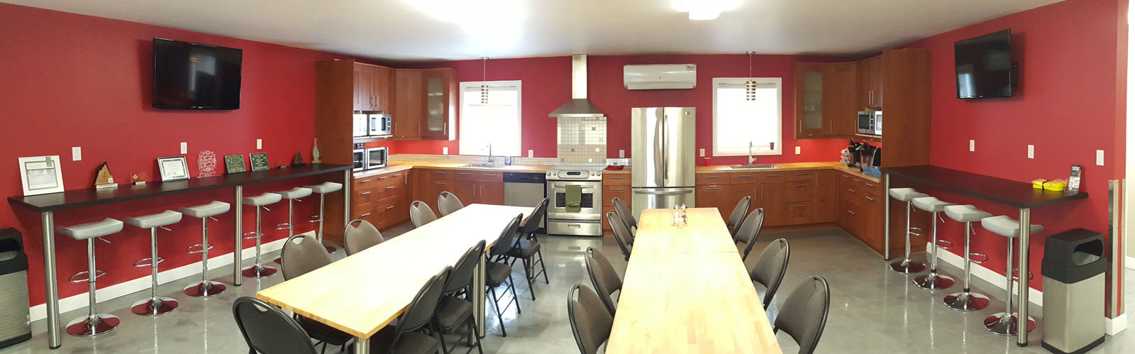 Une salle à diner toute équipée pour le repos bien mérité du midi. Informez-vous de nos différents forfaits repas et collation.